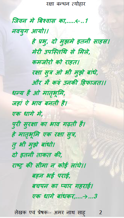 आज रक्षा बंधन का ये महान पर्व हमे हमारी जिम्मेदारी को बढ़ाकर हमे सहज और सतर्क बनाता है। हमारे समाजिक दायित्वो के निर्वाह के साथ एक बैचारिक संबंध को गढ़ते हुए जो न्यायोचित व्यवहार किया जाता है वह हमारे संस्कृति के महानता को उँचाई तक ले जाता है। हमेशा नवाचार बना रहे इस कामना के साथ आप सभी को रक्षा बंधन की हार्दिक शुभकामनायें। जय हिन्द।
